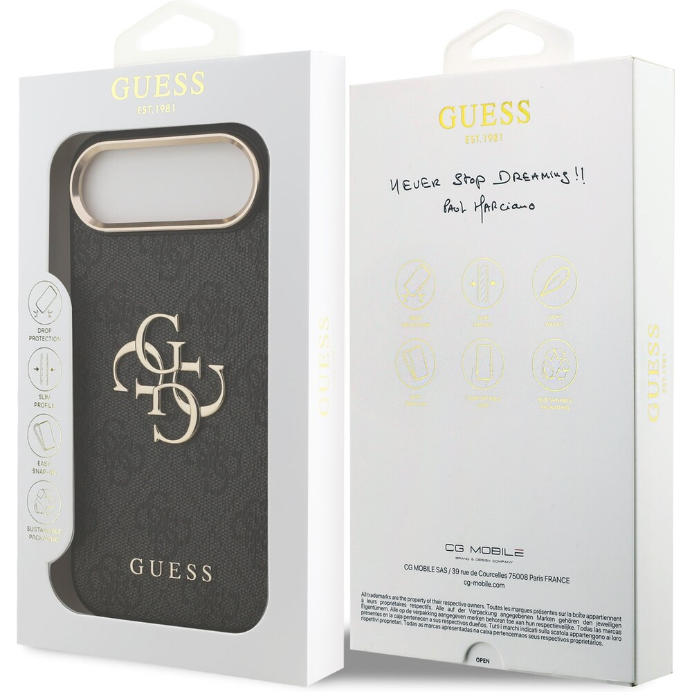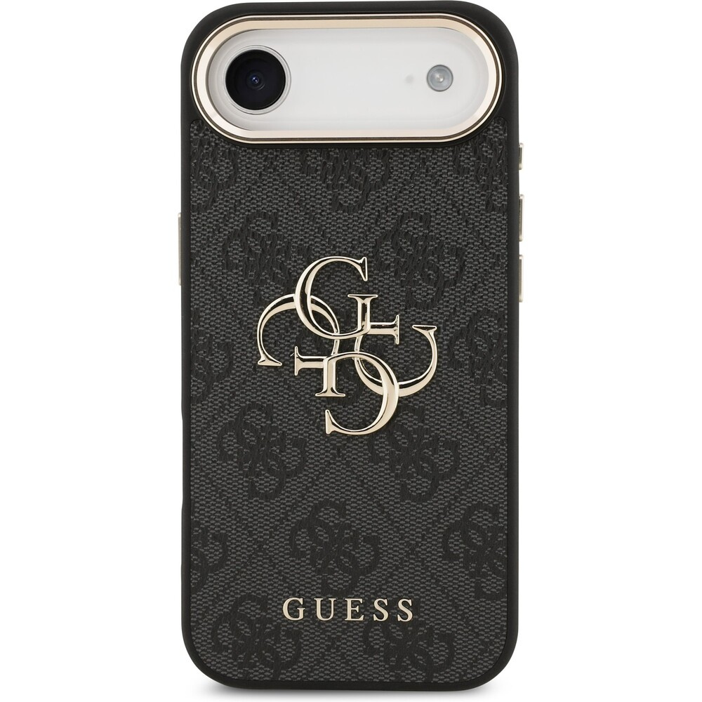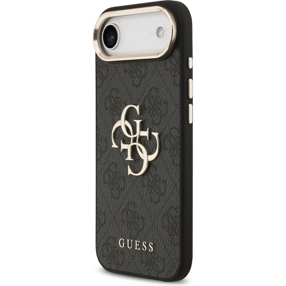 Guess PU Leather 4G Metal Logo Gold Frame MagSafe kryt iPhone Air černý