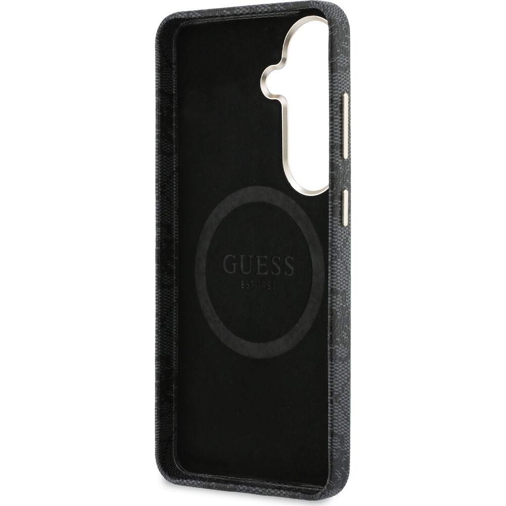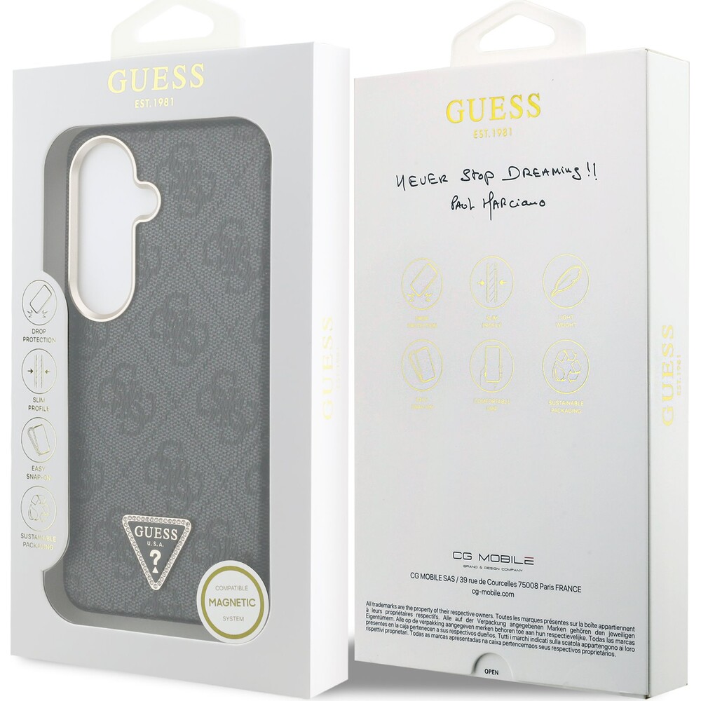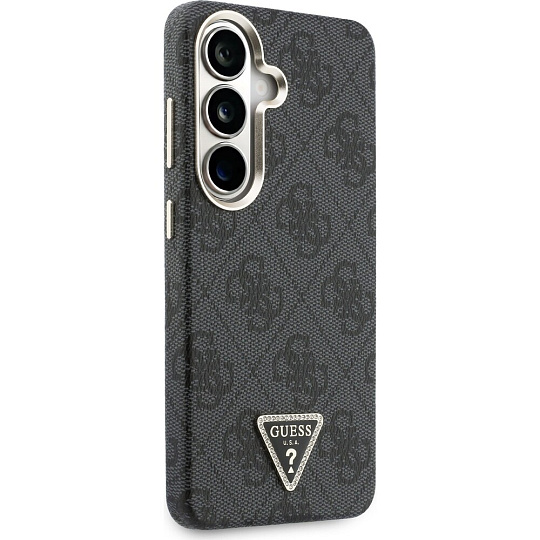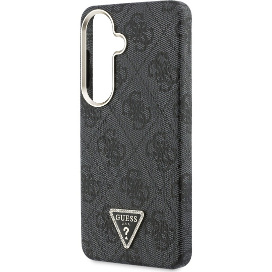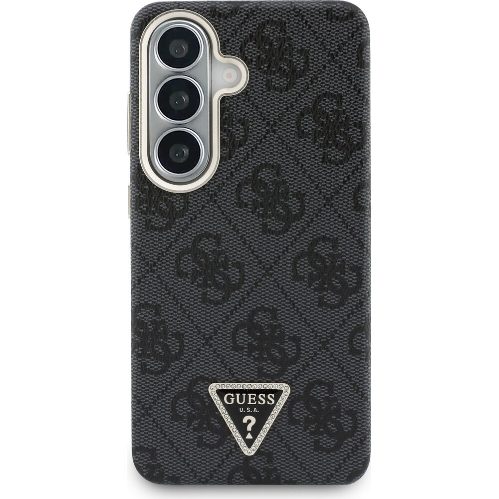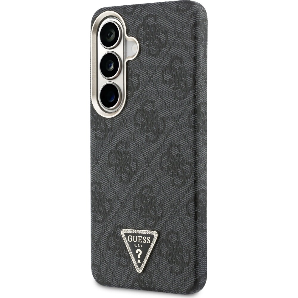 Guess PU Leather 4G Strass Triangle Logo Gold Frame Magnetic kryt Samsung Galaxy S26 černý