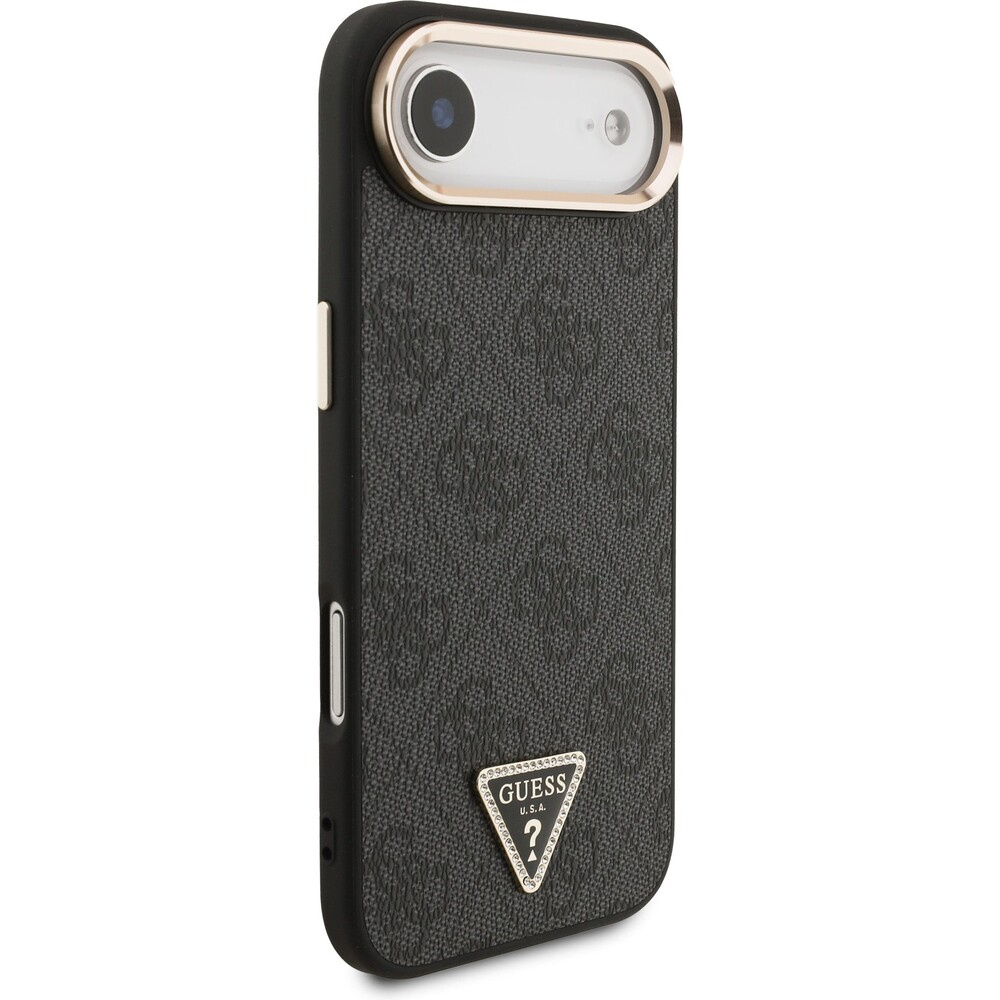 Guess PU Leather 4G Triangle Logo Gold Frame MagSafe kryt iPhone Air černý