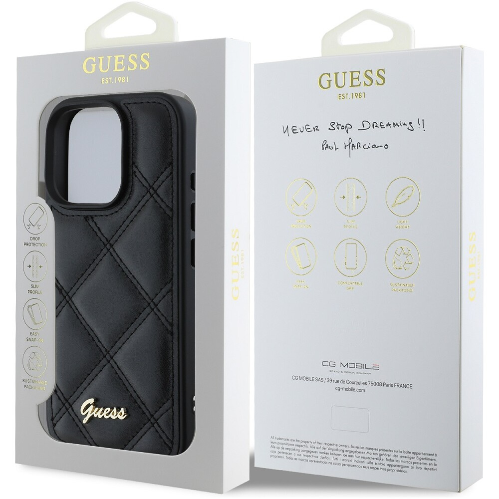 Guess PU Leather Quilted kryt pro iPhone 16 Pro Max černý