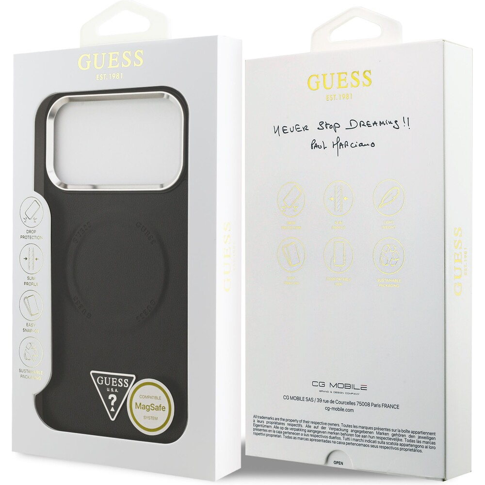 Guess PU Leather Triangle Logo MagSafe kryt iPhone 17 Pro Max černý