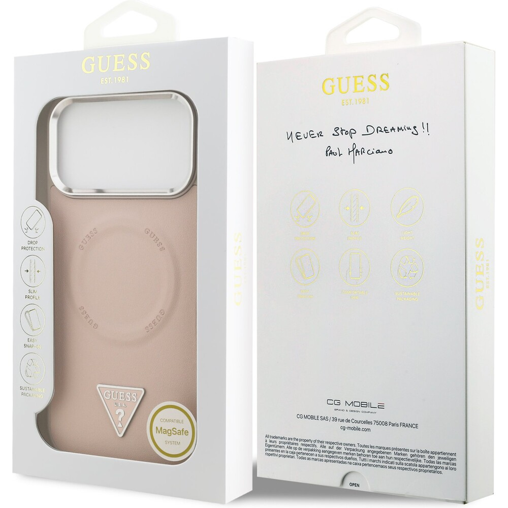 Guess PU Leather Triangle Logo MagSafe kryt iPhone 17 Pro Max růžový