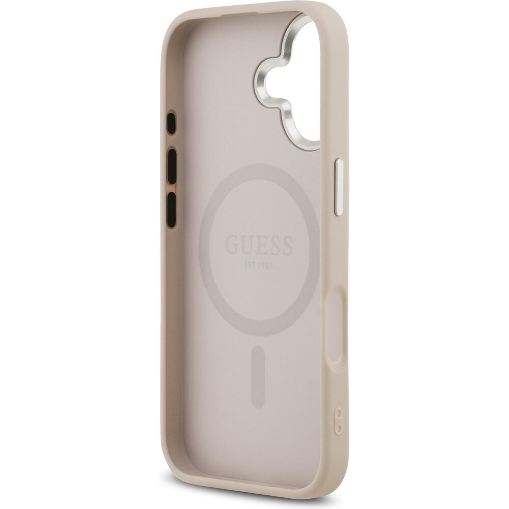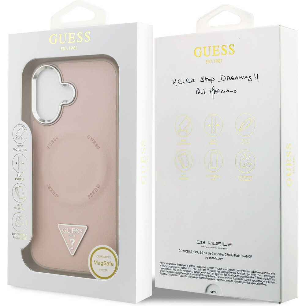Guess PU Leather Triangle Logo MagSafe kryt iPhone 17 růžový