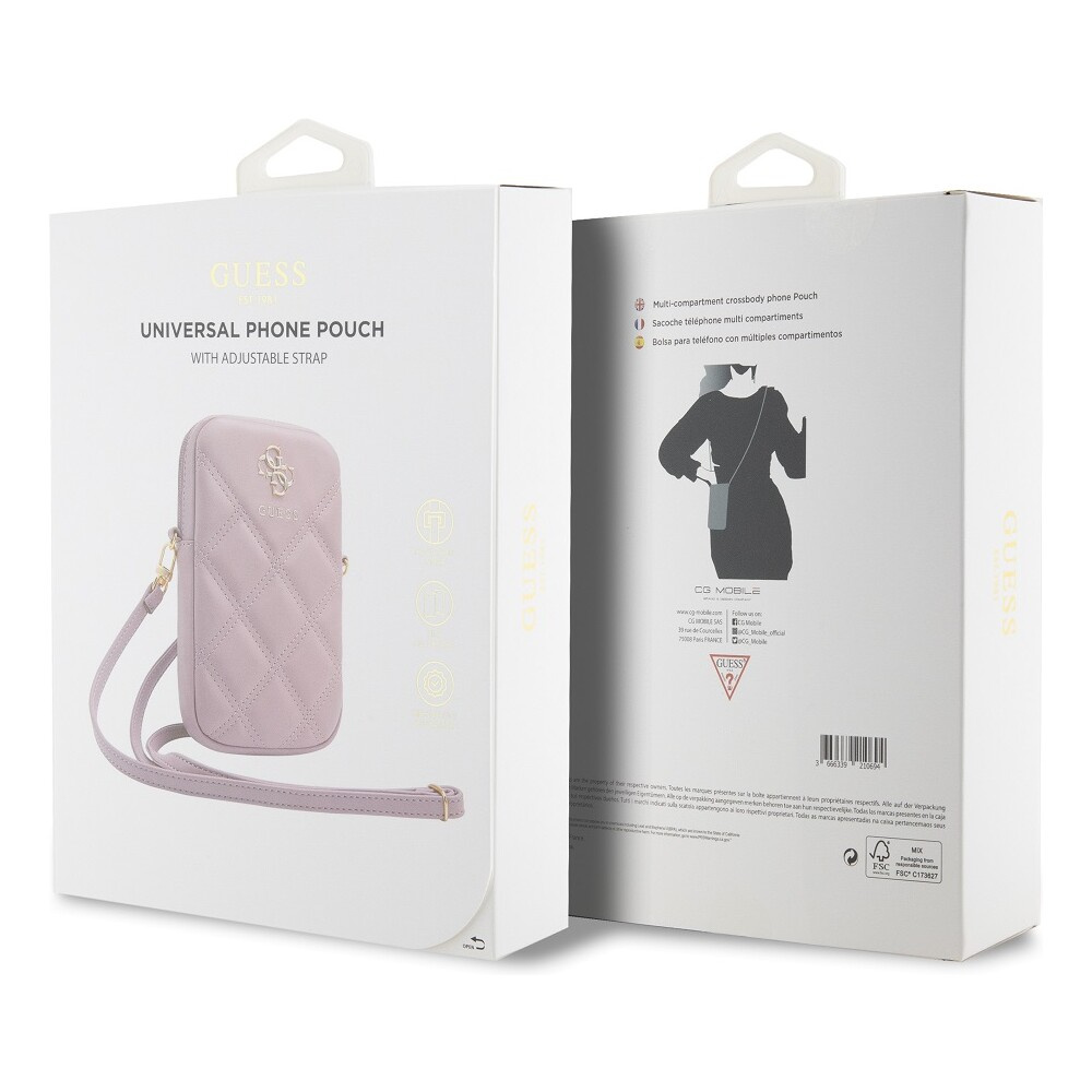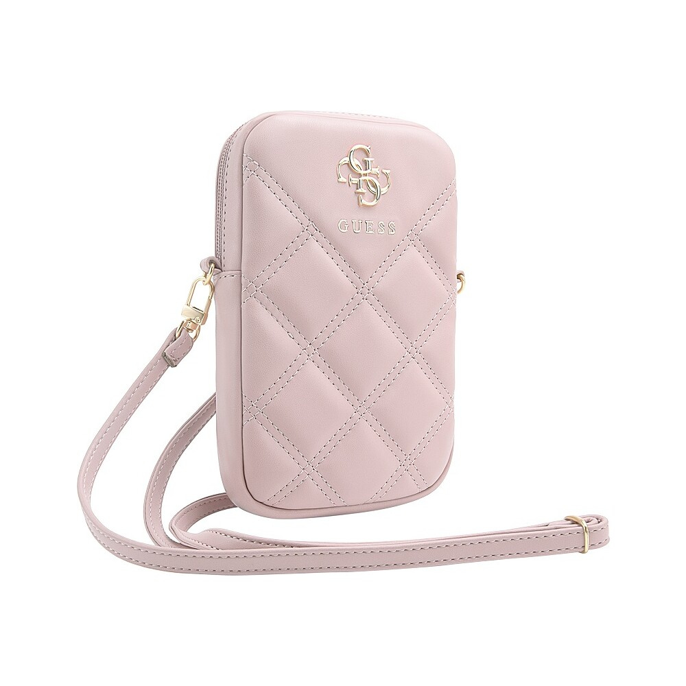 Guess PU Quilted 4G Metal Logo Wallet Phone Bag Zipper růžový