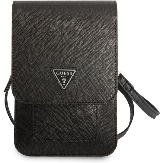 Guess PU Saffiano Triangle Logo Phone Bag černé