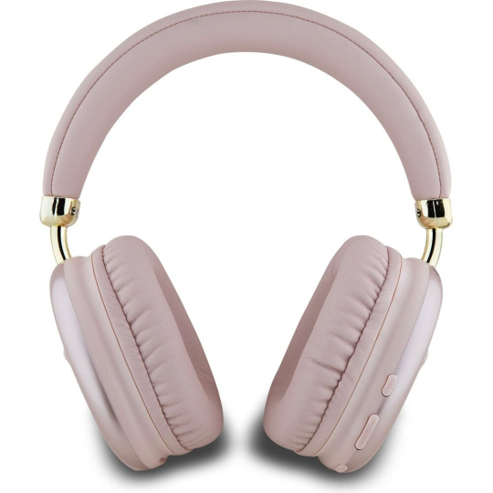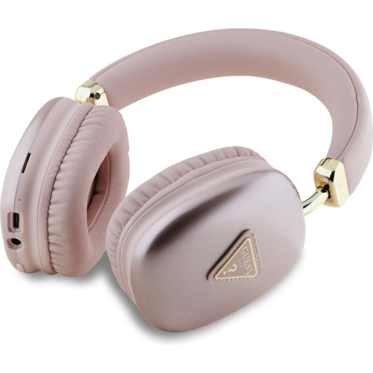 Guess Saffiano PU Leather Triangle Logo bezdrátová sluchátka růžová