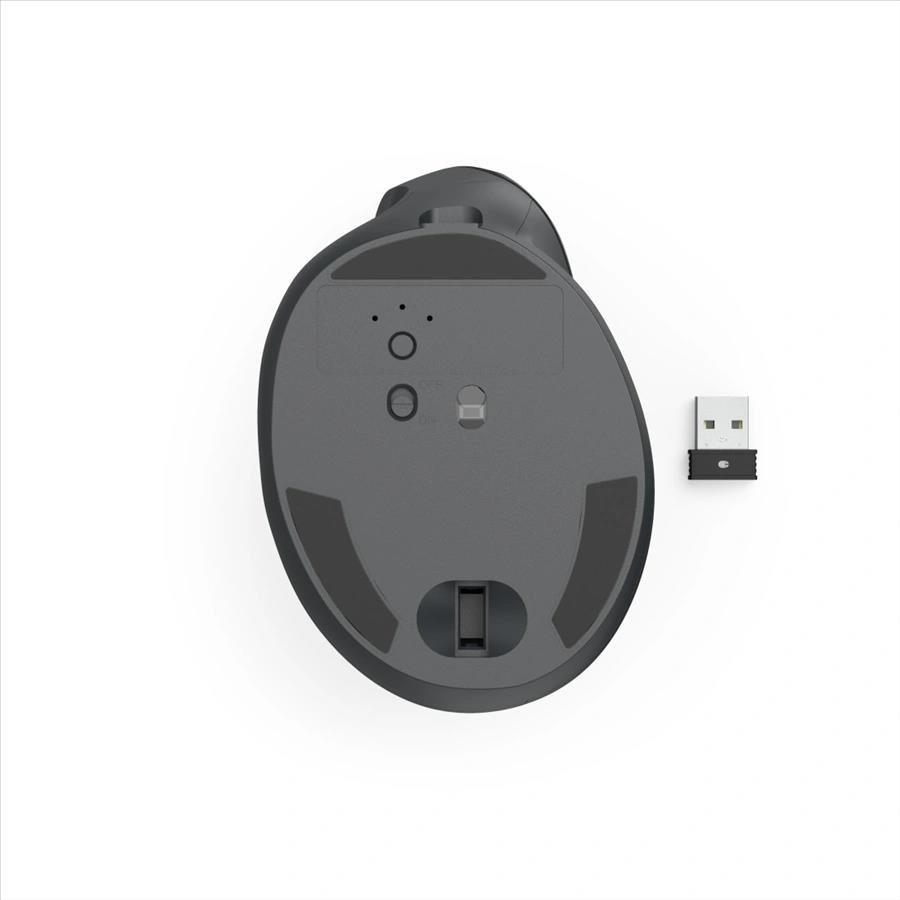 - 8tlačítková ergonomická bezdrátová optická myš s volitelným připojením na tři zařízení: 1x bezdrátový USB přijímač a 2x Bluetooth - vertikální provedení předchází namožení a bolesti ramen a zápěstí - ergonomický tvar vhodný pro leváky - integrovaný akumulátor, nabíjení pomocí USB-C kabelu - tichá, bez zvuků při klikání pro nerušenou práci - DPI tlačítko pro změnu rozlišení (800/1200/1600 DPI) - nano USB přijímač můžete přenášet v těle myšky - aktivace AI asistenta v systému tlačítkem - tlačítka s funkcí zpět/vpřed v prohlížeči - pogumované rolovací kolečko - polymerové kluzné plochy - samostatný vypínač pro úsporu energie - 2,4 GHz technologie pro spolehlivý a nerušený přenos signálu s dosahem až 10 m - tělo a tlačítka jsou vyrobena z 85% z recyklovaného ABS plastu - balení je 100% bez plastů Systémové požadavky: - běžné funkce: Windows 11/10, Mac OS 11 nebo novější - tlačítko Assist: Windows 11 s aplikací Microsoft Copilot Technické parametry: - připojení: USB-A vidlice (RF 2,4 GHz), Bluetooth 5.2 - počet tlačítek: 8 včetně rolovacího kolečka - rozlišení: 800/1200/1600 DPI - napájení: integrovaný Li-Ion akumulátor - konektor nabíjení: USB-C zásuvka - délka nabíjecího kabelu: 1,8 m - rozměry: 8,6 x 11,5 x 7,1 cm - hmotnost: 95 g - barva: černá Obsah balení: - myš EWM-600R - USB-A přijímač - nabíjecí kabel USB A-C (1,8 m) se stahovací páskou - návod k použití.