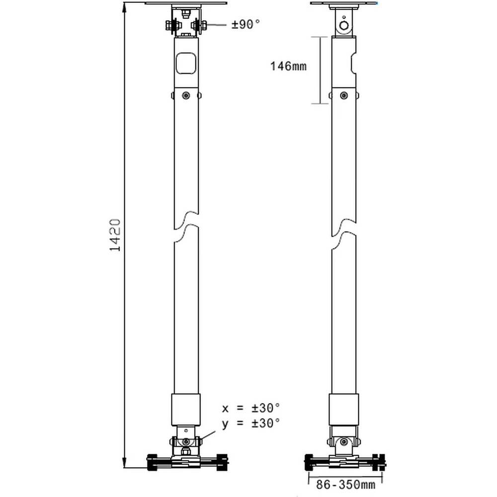 350 mm (V), 800 mm (Š), 3 mm (H)