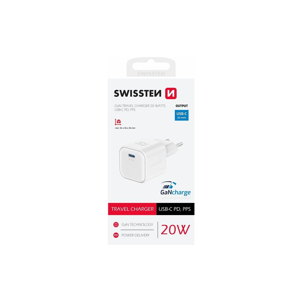 Swissten síťový adaptér GaN 1x USB-C 20W PD bílý