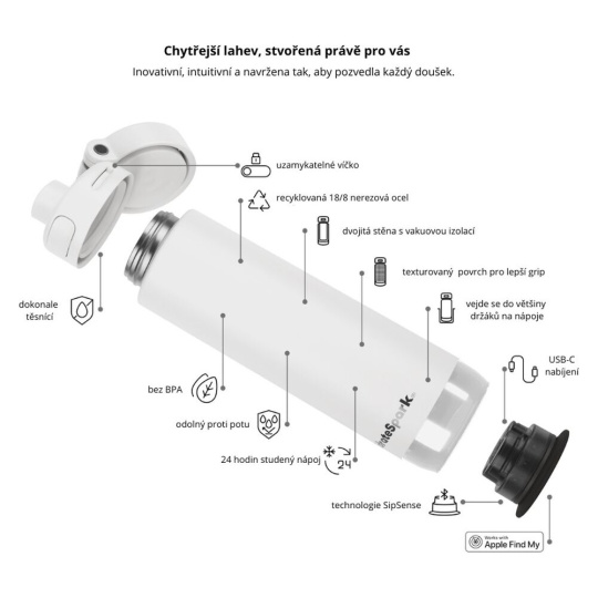 HidrateSpark PRO 2 chytrá lahev, 621 ml bílá