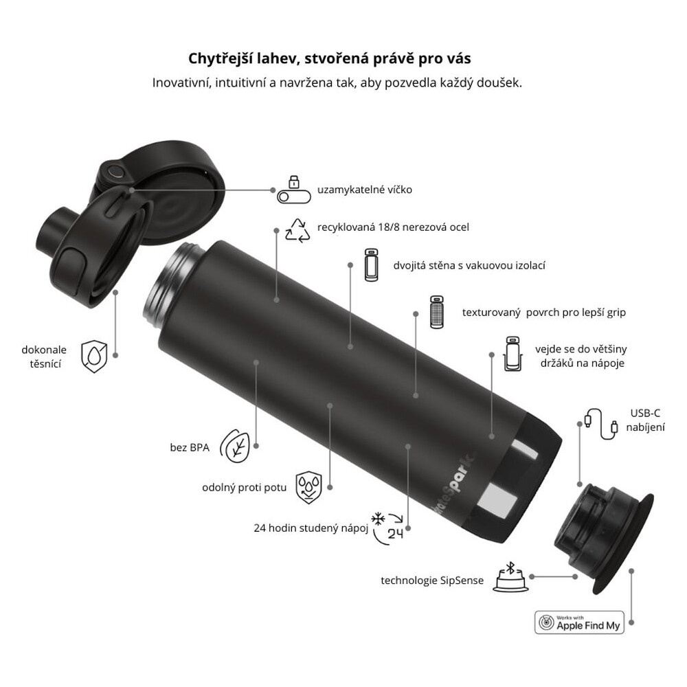 HidrateSpark PRO 2 chytrá lahev, 621 ml černá