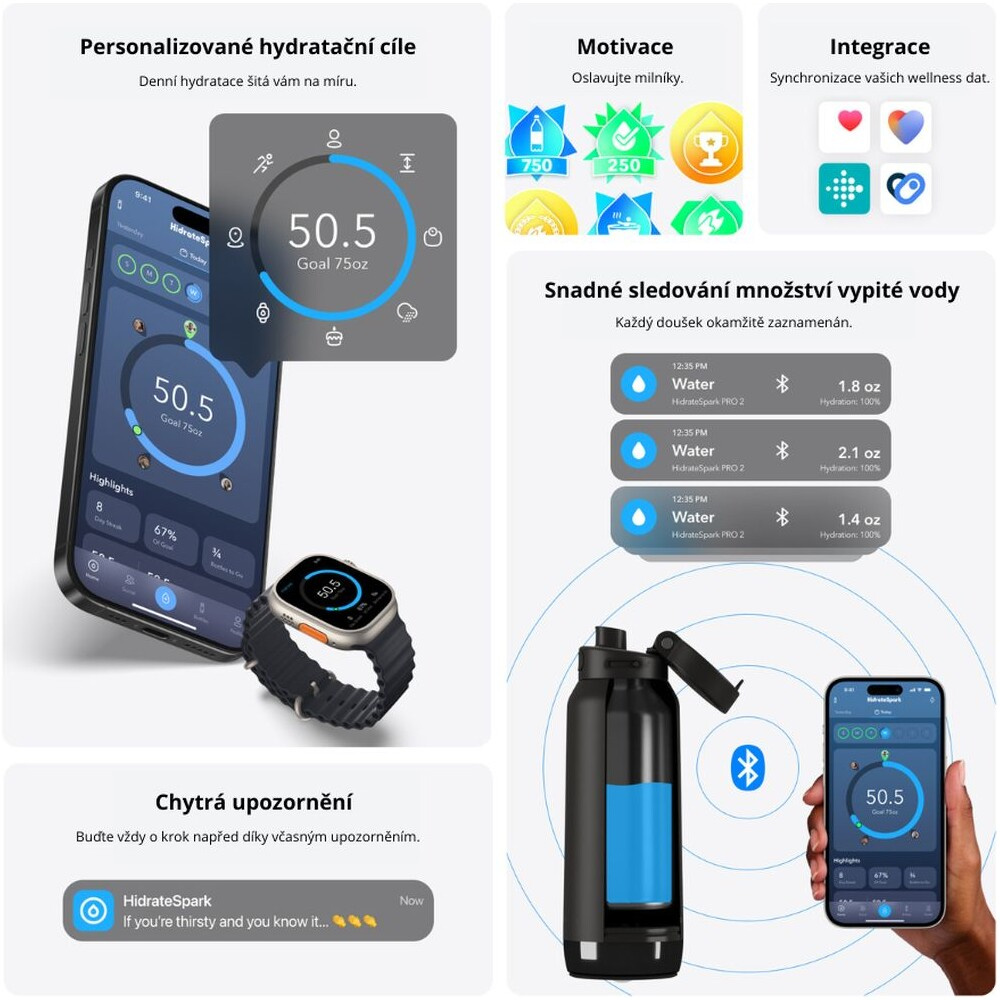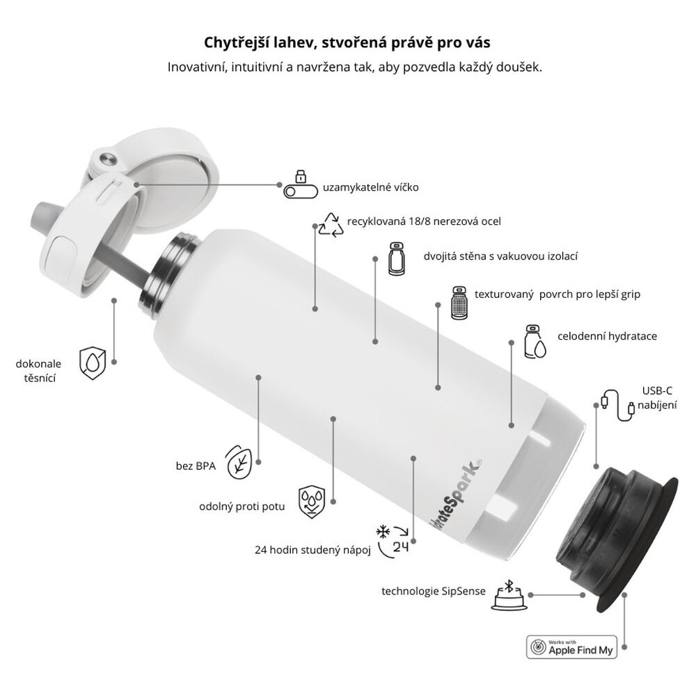 HidrateSpark PRO 2 chytrá lahev s brčkem, 950 ml bílá