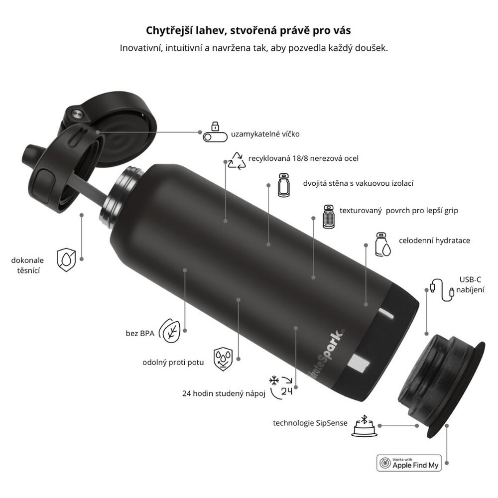 HidrateSpark PRO 2 chytrá lahev s brčkem, 950 ml černá
