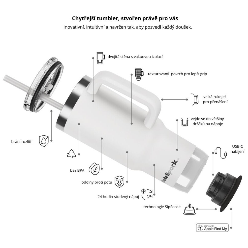 HidrateSpark PRO 2 Tumbler chytrý hrnek, 887 ml bílý