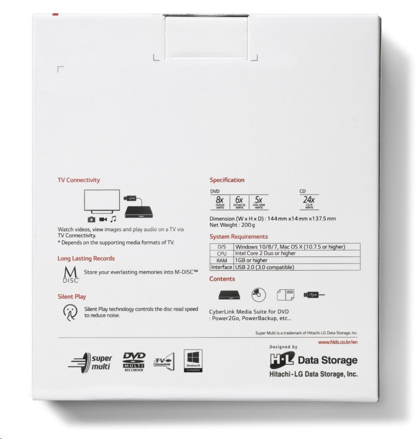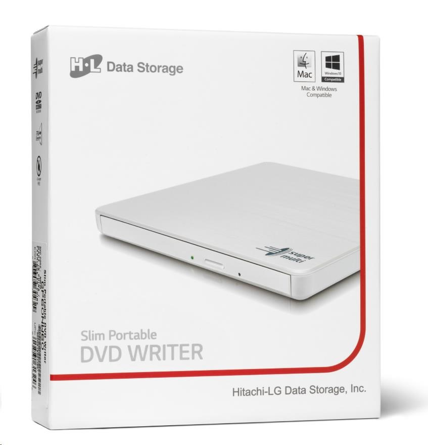 HITACHI LG - externí mechanika DVD-W/CD-RW/DVD±R/±RW/RAM GP60NW60, Slim, White, box+SW