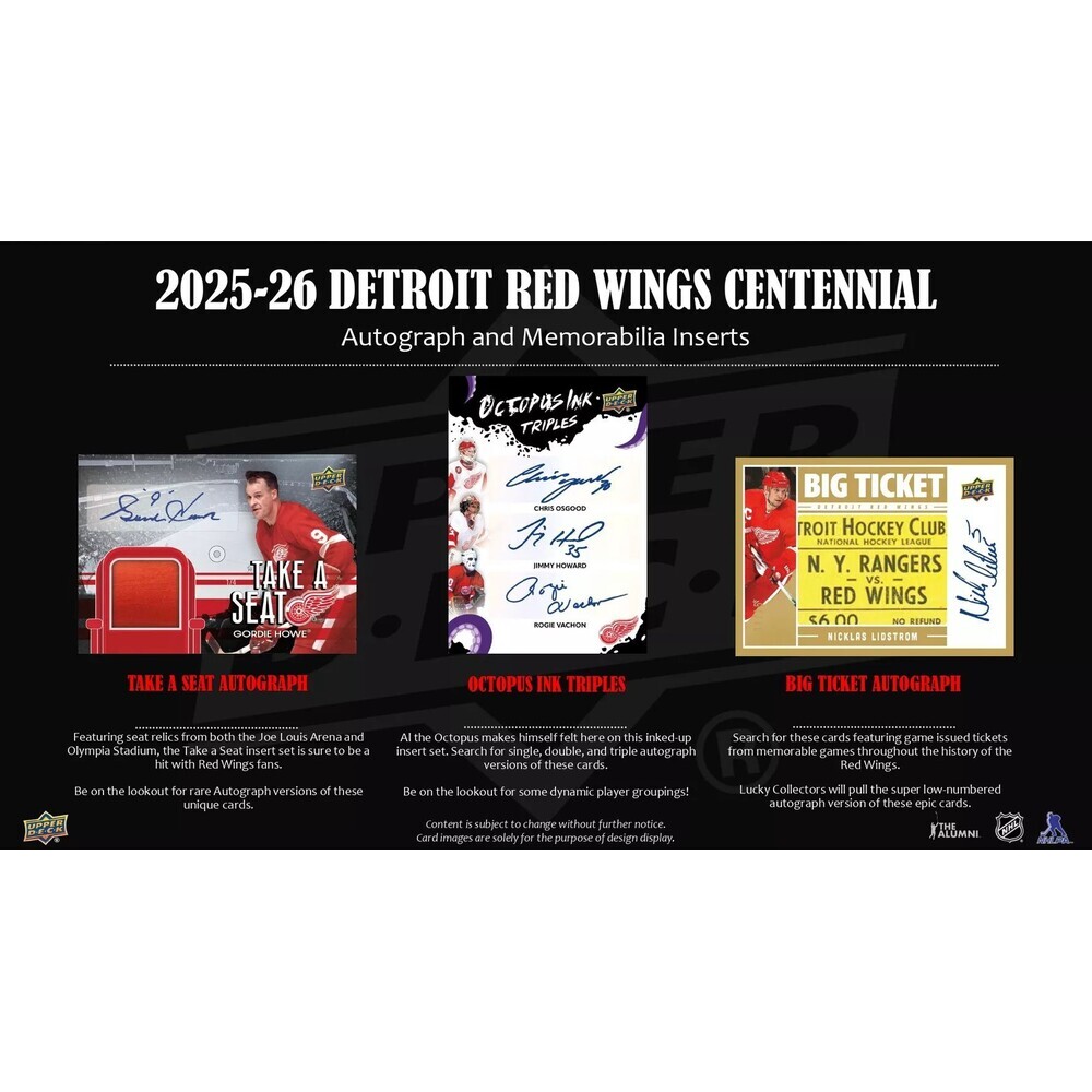 Hokejové karty 2025-26 Upper Deck Detroit Red Wings Centennial Hobby Box