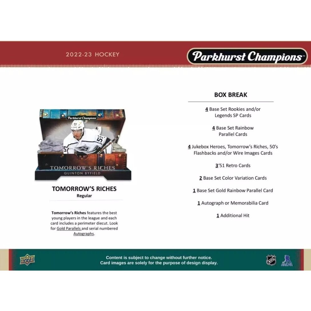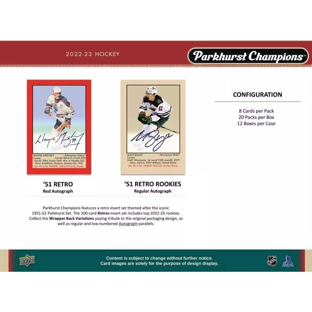 Hokejové karty Upper Deck Parkhurst Champions Hockey Hobby Box 2022-23