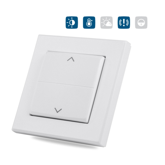 Kryt kolébkového vypínače se symboly šipek a rámečkem (HmIP-BRA) pro programovatelné bezdrátové akční členy (HmIP-BRC2, HmIP-BROLL, HmIP-BBL, HmIP-BSM, HmIP-BDT) o velikosti 55 mm je součástí systému chytré domácnosti Homematic IP.