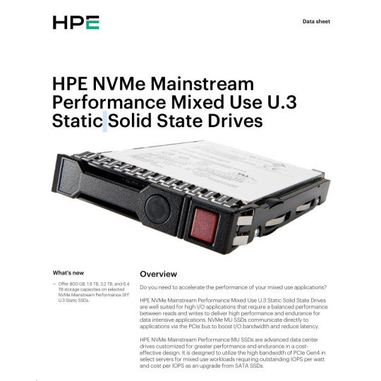 HPE 3.2TB NVMe Gen4 Mainstream Performance Mixed Use SFF BC U.3 Static V2 Multi Vendor SSD P65015-B21 RENEW.