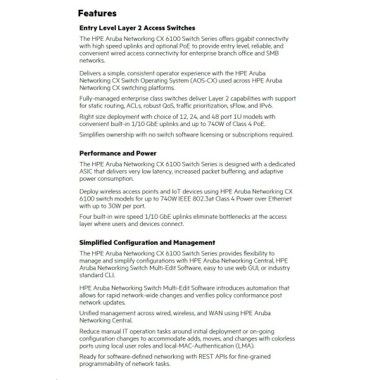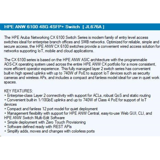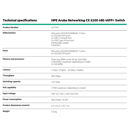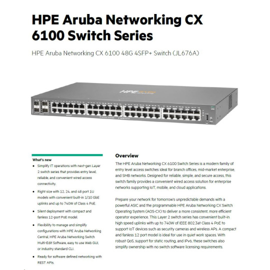 HPE Aruba Networking CX 6100 48G 4SFP+ Switch RENEW JL676AR#ABB.
