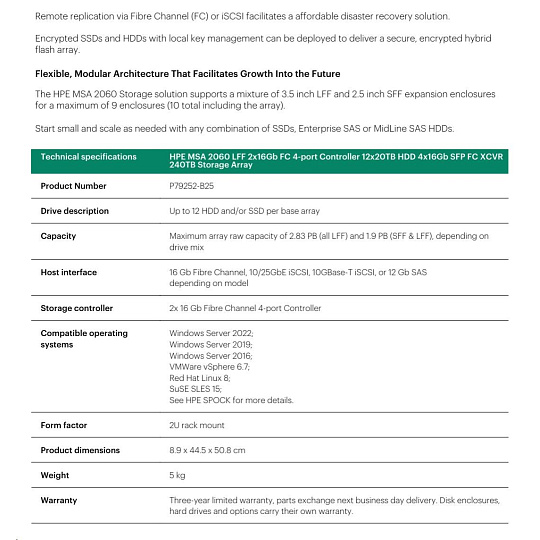 HPE MSA 2060 LFF 2x16Gb FC 4p Array.