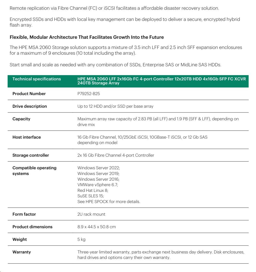 HPE MSA 2060 LFF 2x16Gb FC 4p Array.