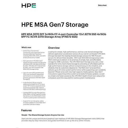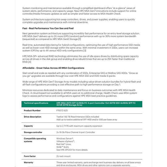 HPE MSA 2070 LFF 2x32Gb FC 4p Array.