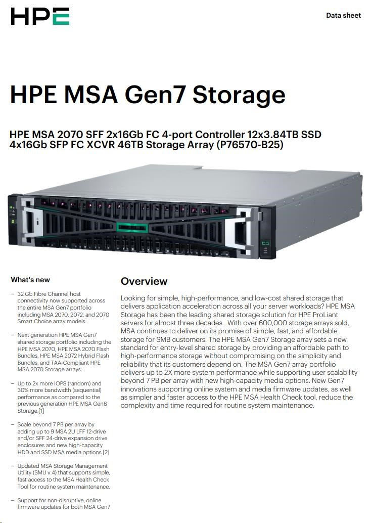 HPE MSA 2070 SFF 2x16Gb FC 4-port Controller 12x3.84TB SSD 4x16Gb SFP FC XCVR 46TB (C8R24B) Storage Array
