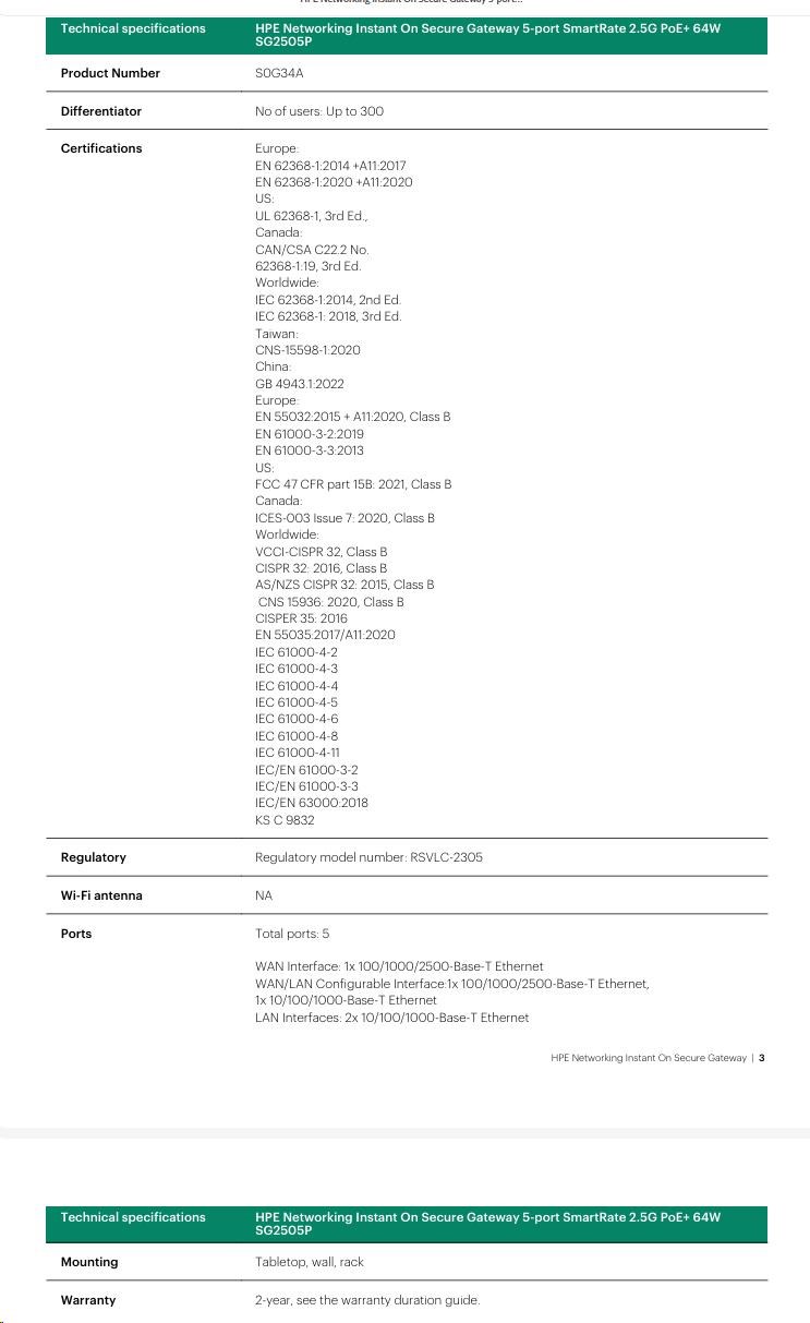 HPE Networking Instant On Secure Gateway SG1004(S0G33A) | HPE Networking Instant On Secure Gateway SG2505P(S0G34A) |