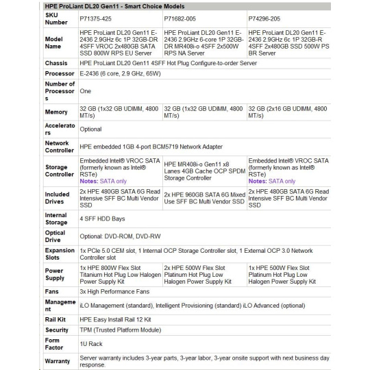 | HPE ProLiant DL20 Gen11 - Smart Choice Models | |