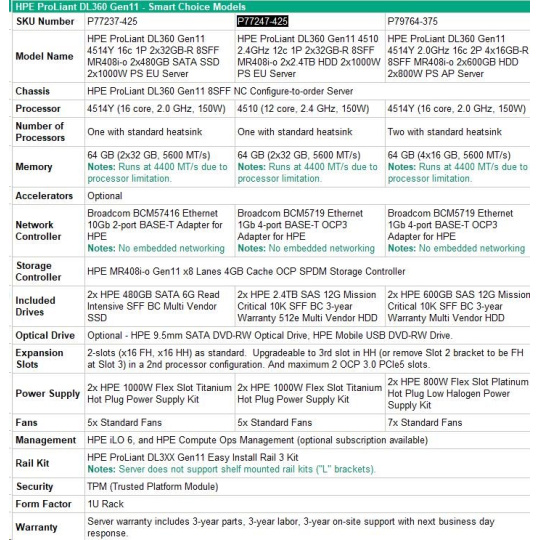 HPE ProLiant DL360 Gen11 4510 - Specs