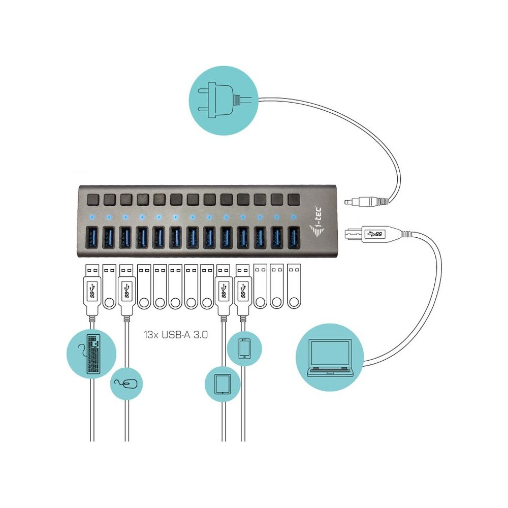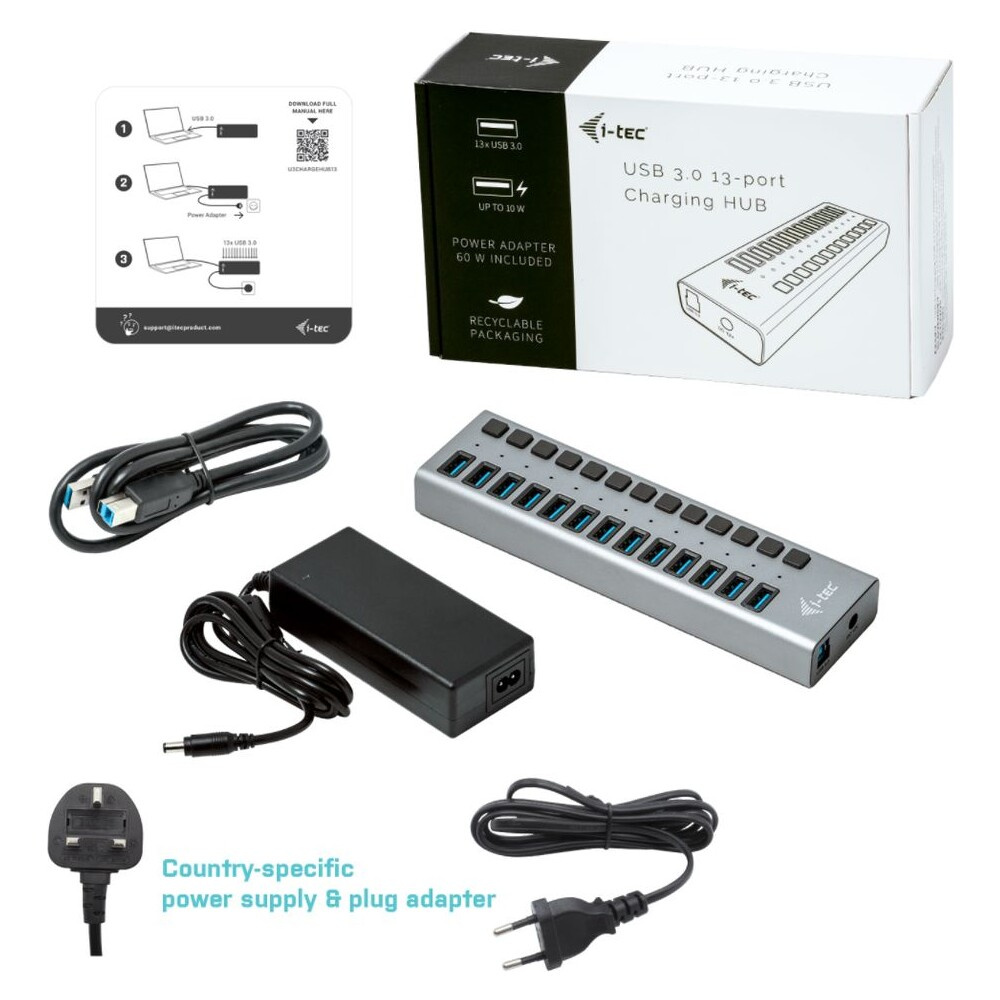 i-tec USB 3.0 Charging HUB 13 Port + Power Adapter 60 W