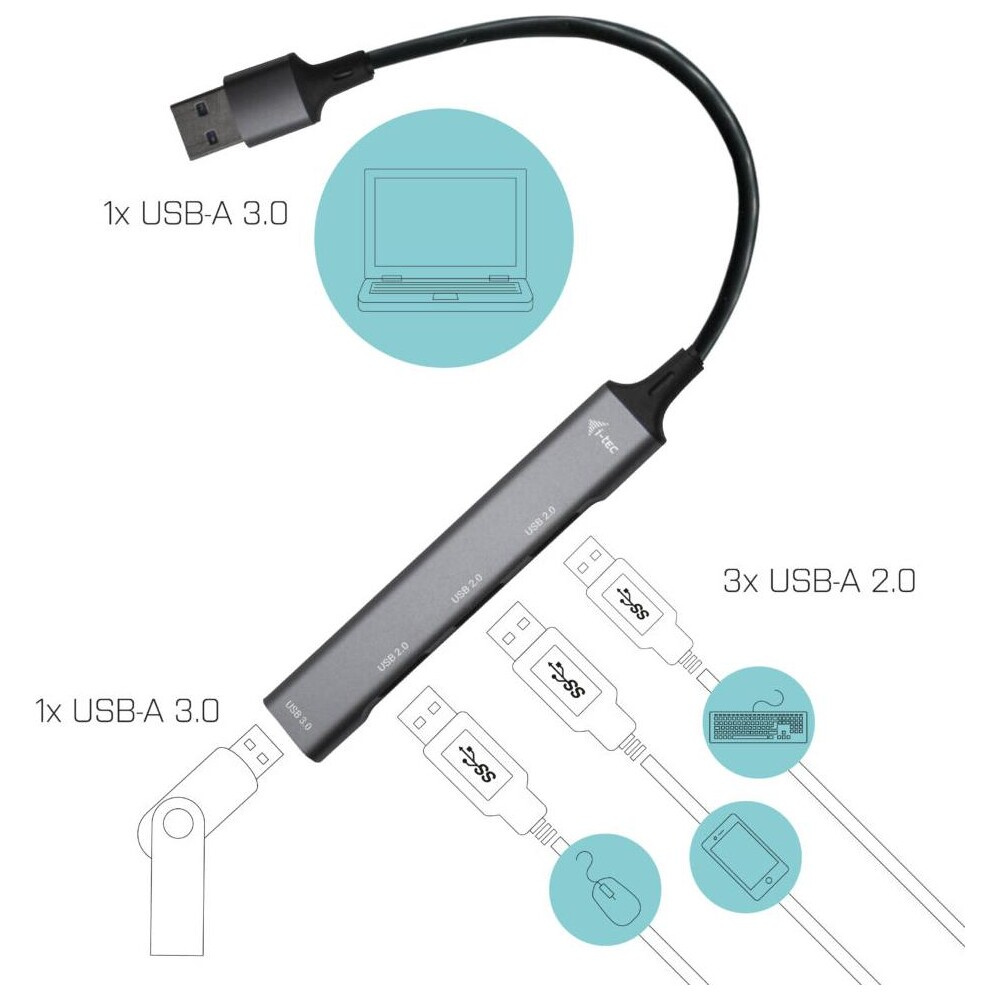 i-tec USB-A 3.0 Metal HUB 1x USB-A 3.0 + 3x USB 2.0