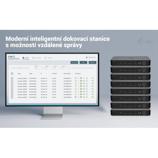 - Tato výkonná a univerzální dokovací stanice je vybavena dedikovaným LAN portem, který umožňuje plnou vzdálenou správu – až na úroveň jednotlivých portů – odkudkoliv. Správa funguje i bez připojení k hostitelskému zařízení – stačí napájení a připojení do LAN.