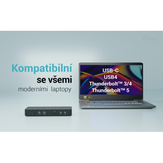 - Dokovací stanice je kompatibilní se všemi moderními notebooky vybavenými porty USB-C, USB4 nebo Thunderbolt™ 3/4/5.
