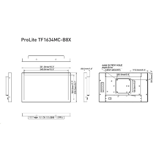 iiyama ProLite TF1634MC-B8X, 39.6 cm (15,6''), Projected Capacitive, 10 TP, Full HD, black