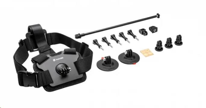 Balíček příslušenství pro akční kamery ONE X nebo ONE R určený pro použití při zimních sportech. Balení obsahuje hrudní popruh a montážní sadu na helmu včetně prodlužovací tyče..
