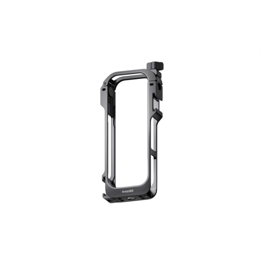 Lehký kovový rámeček pro příslušenství pro kameru Insta360 X5 poskytuje plnou ochranu kamery. Disponuje rychloupínacím bodem, dvěma držáky na příslušenství a závity 1/4". Součástí je kvalitné ochrana mikrofonu pro čistý zvuk i při větru..
