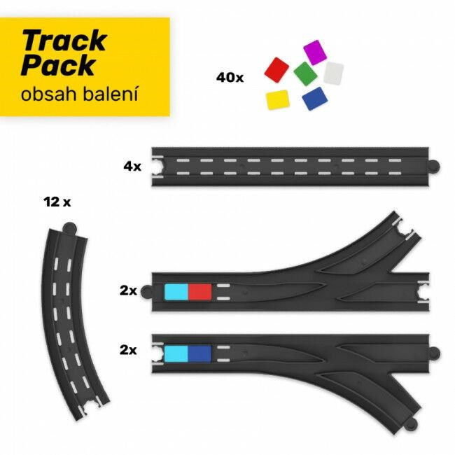 Máte doma Intelino a omrzelo vás pořád jezdit dokolečka na jednoduché dráze? Víc zábavy na velkém kolejišti si s Intelinem užijete díky extra dávce 20 různých oboustranných kolejnic a 40 barevných značek.