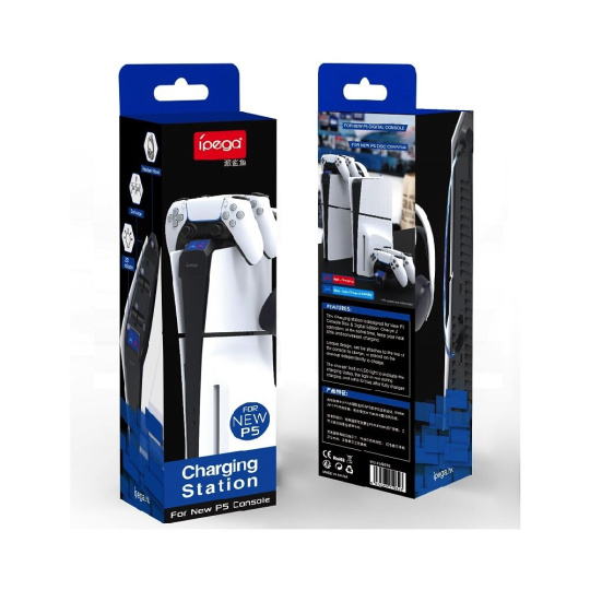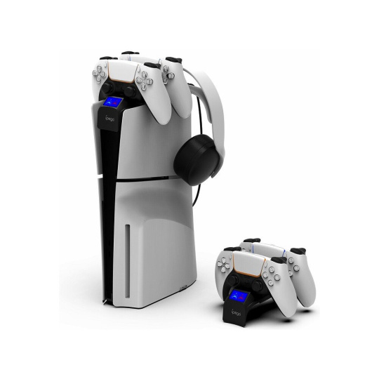 iPega P5S016 Dual Charger Dock s držákem na sluchátka a ovladače pro PS5 Slim černý