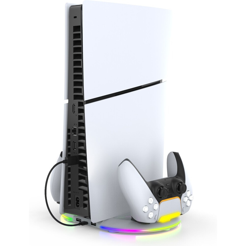 iPega P5S045 Vertikální Nabíjecí Stojan s RGB pro PS5/PS5 Slim/PS5 Pro bílý