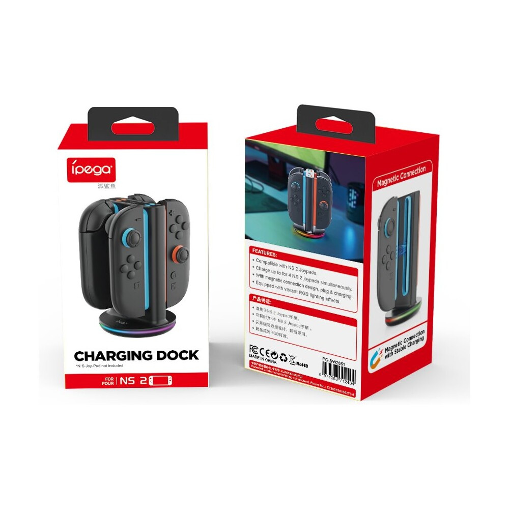 iPega SW2051 Nabíjecí Stanice s RGB pro JoyCon Ovladače Nintendo Switch 2 černá