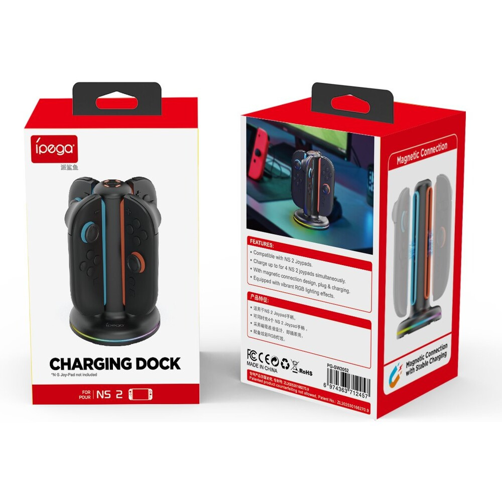 iPega SW2052 nabíjecí stanice s RGB pro JoyCon Ovladače Nintendo Switch 2 černá