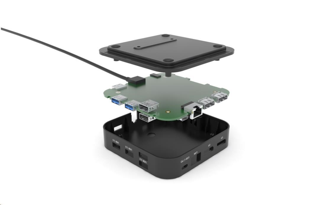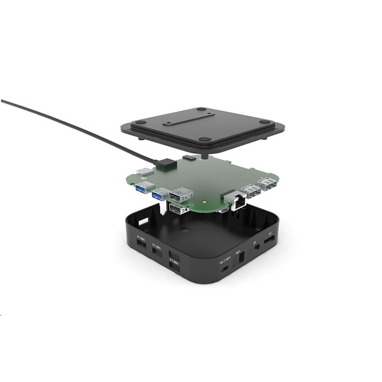 Kancelářská dokovací stanice USB-C, která podporuje až 2x externí monitor v rozlišení 4K. Stanice je kompatibilní s jakýmkoliv notebookem vybaveným portem USB-C nebo Thunderbolt 3. 6x USB port, spolehlivé a rychlé připojení do podnikové sítě díky integrovanému LAN portu a podpora instalace za monitor, to vše z této dokovací stanice dělá ideálního společníka pro profesionály. Samozřejmostí je podpora nabíjení vašeho notebooku či tabletu, a to až 100 W (napájecí adaptér je přiložen).