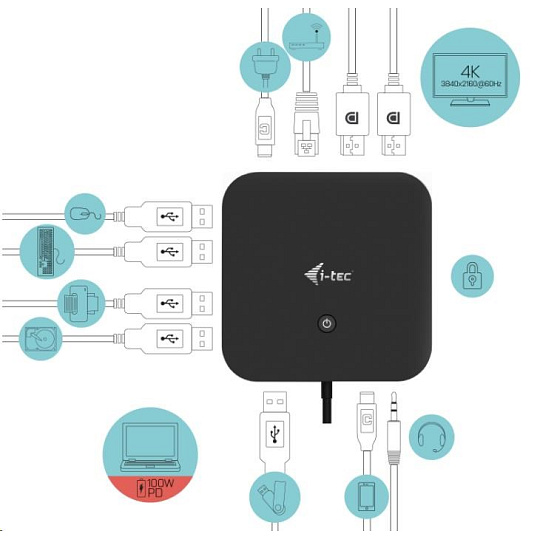 i-tec USB-C Dual Display Docking Station, Power Delivery 100W + Universal Charger 112W