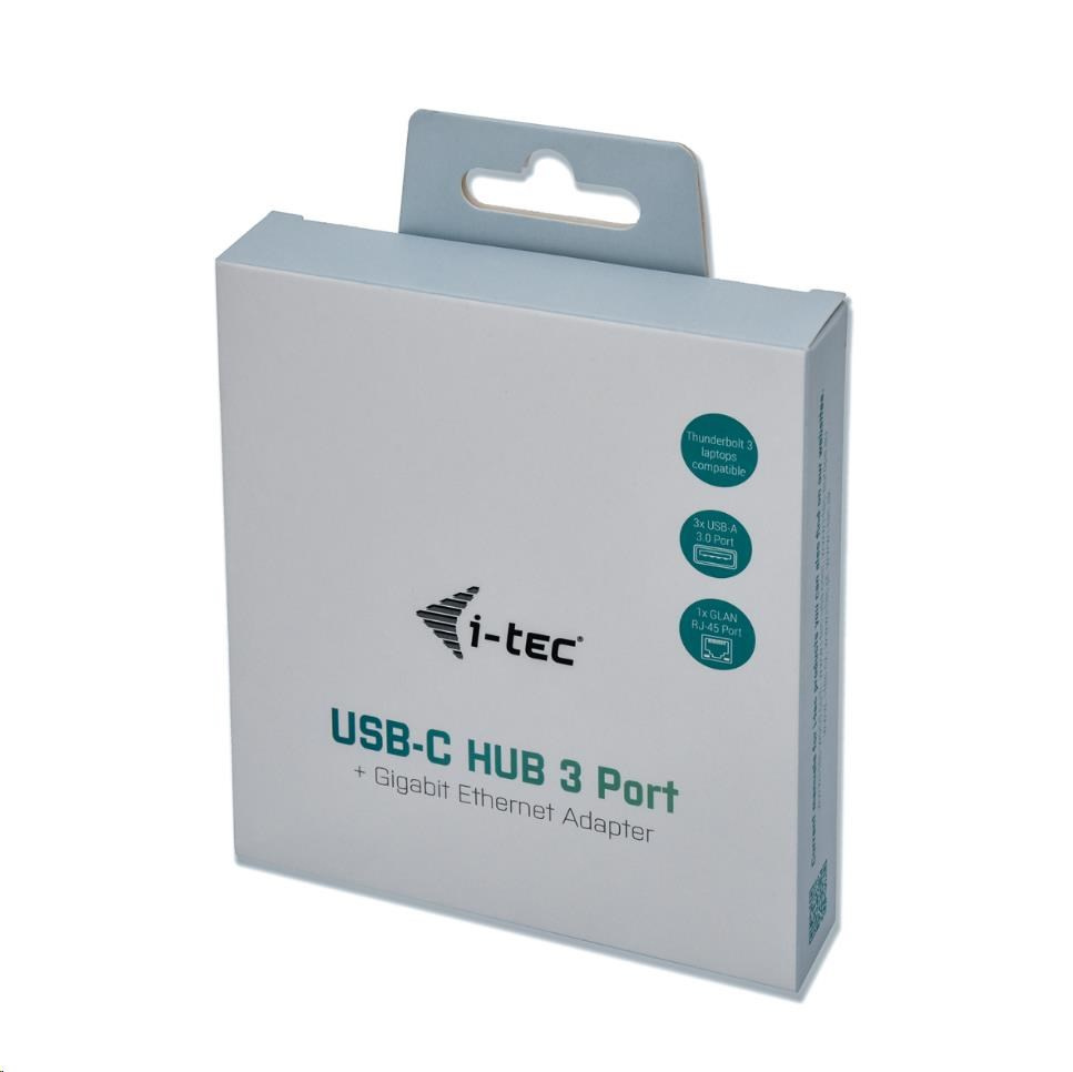 i-tec USB-C Metal 3-portový HUB s Gigabit Ethernet adapterem