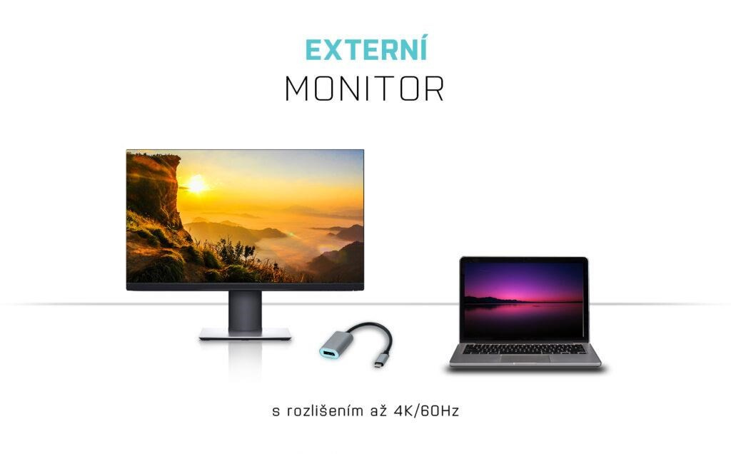 - Rozšiřte svou pracovní plochu o externí Display Port monitor přes nový USB-C nebo Thunderbolt 3 konektor, adaptér umožňuje přenášet video s 4K Ultra HD rozlišením i stereo zvuk