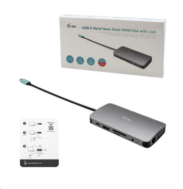 i-tec USB-C Metal Nano Dock HDMI/VGA with LAN + Power Delivery 100 W