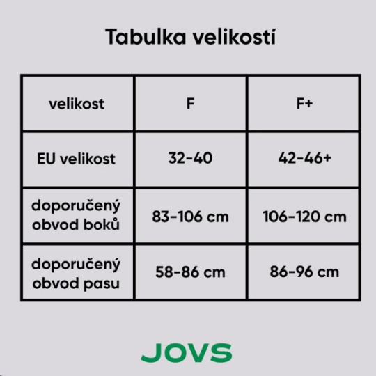 - Velikosti: F (pro obvod boků 66-85 cm), F+ (pro obvod boků 80-90 cm)
