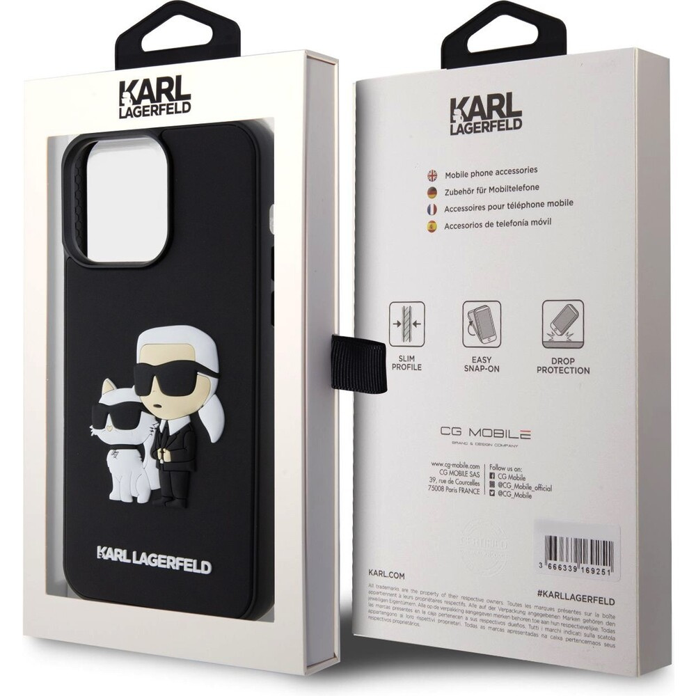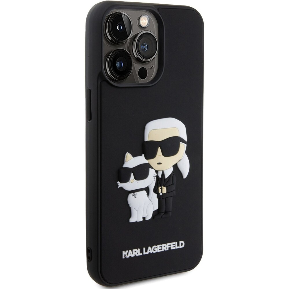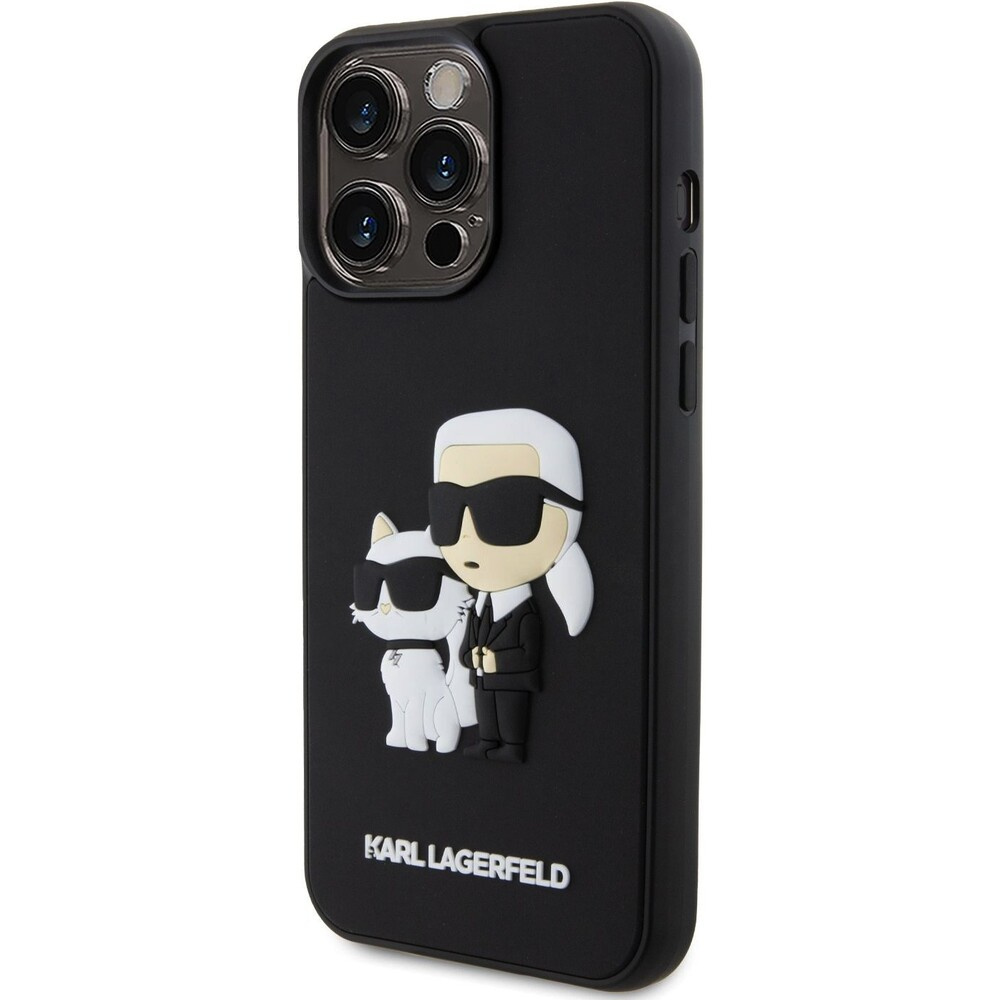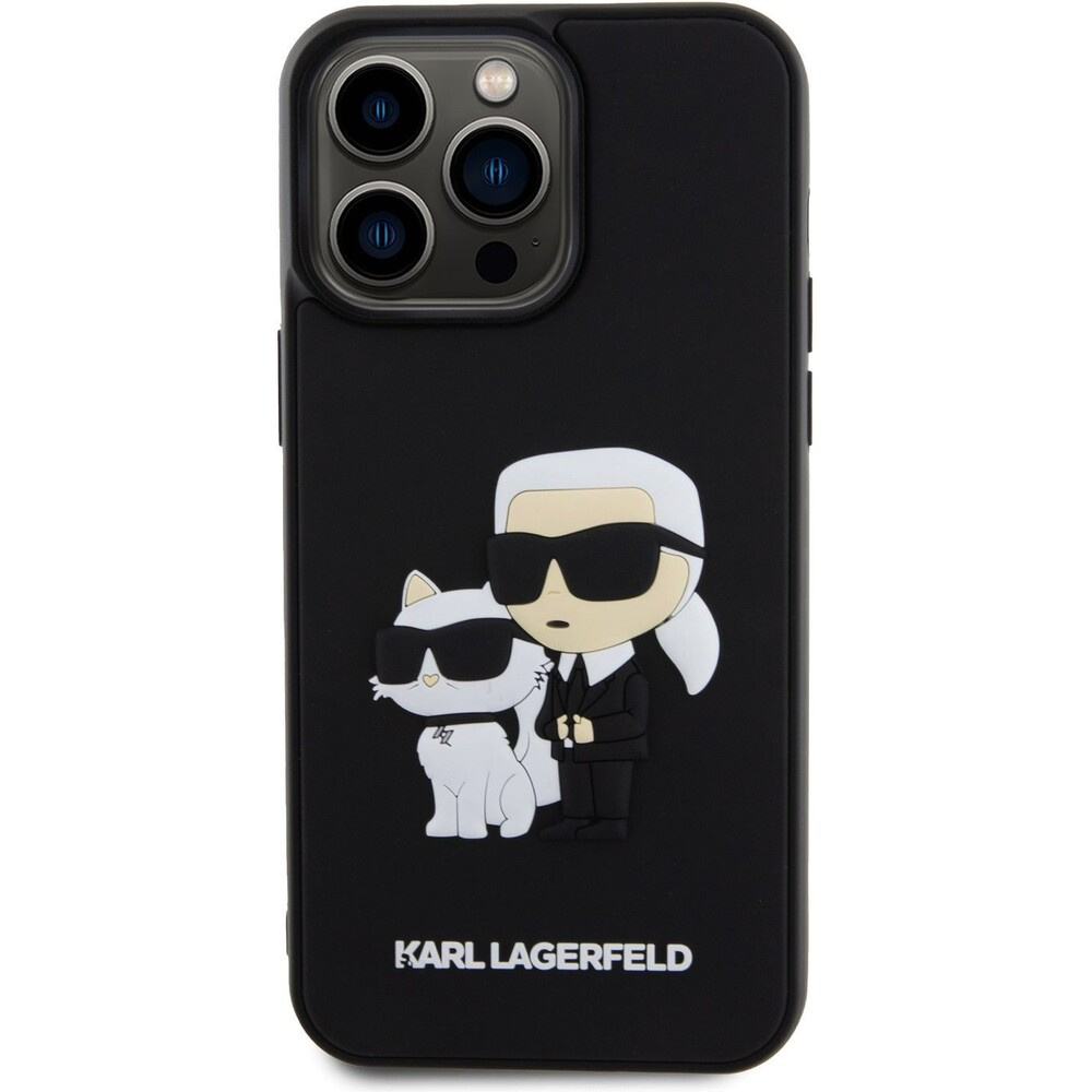 Karl Lagerfeld 3D Rubber Karl and Choupette kryt iPhone 14 Pro Max černý